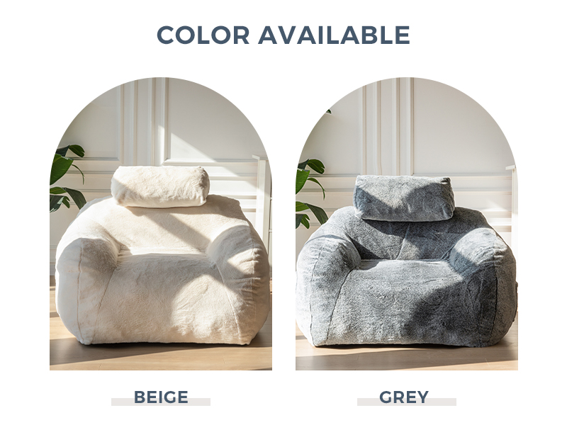 The material of the bean bag chair is fluffy fabric, give a cozy and comfortable feeling, bean bag sofa provides a warm and intimate atmosphere. Its comfortable material ensures a pleasant seating experience and maintains its beauty over time.